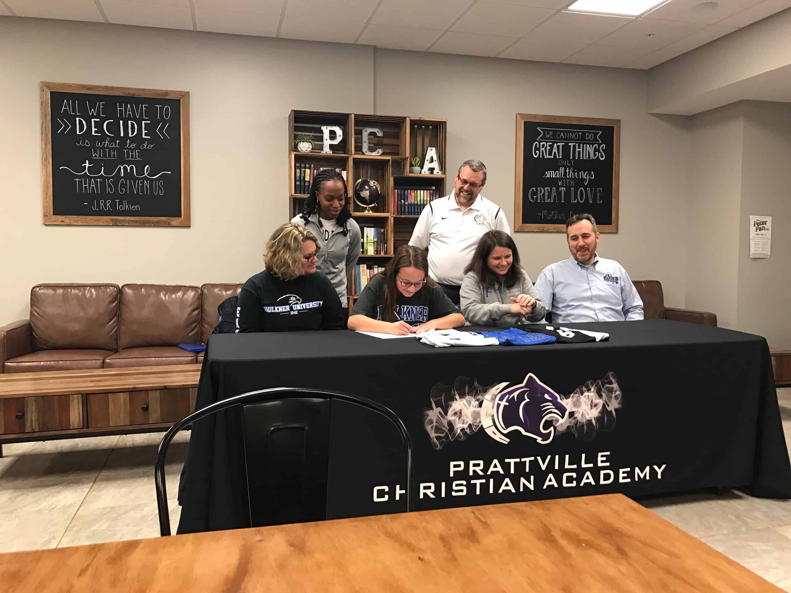 Prattville Christian Academy’s Hannah Rousseau signed an athletic scholarship to play soccer at Faulkner University in Montgomery, Alabama.