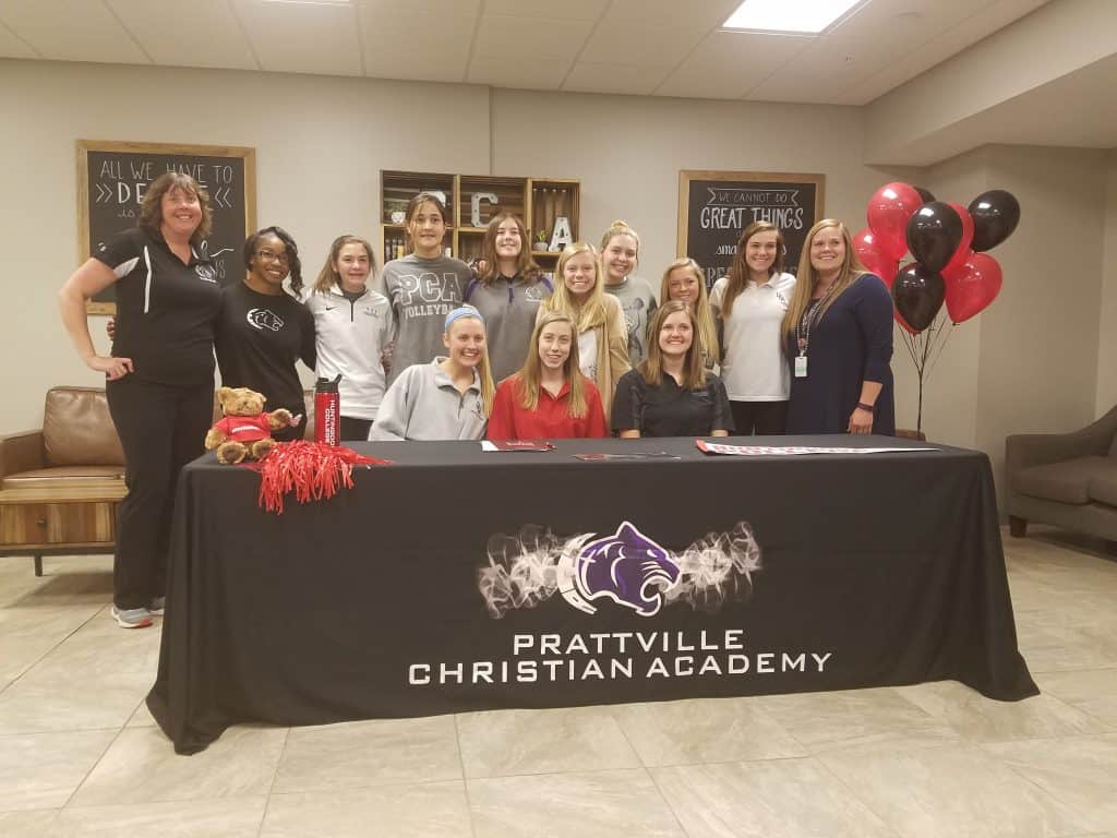 Prattville Christian Academy’s Jessica Brunk signed an athletic scholarship to play volleyball at Huntingdon College in Montgomery, Alabama.
